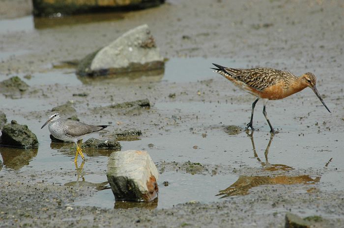 オオソリハシシギ−1(♂) 2005/5 大阪市 D70+VR80-400mm 成鳥夏羽 左はキアシシギ |