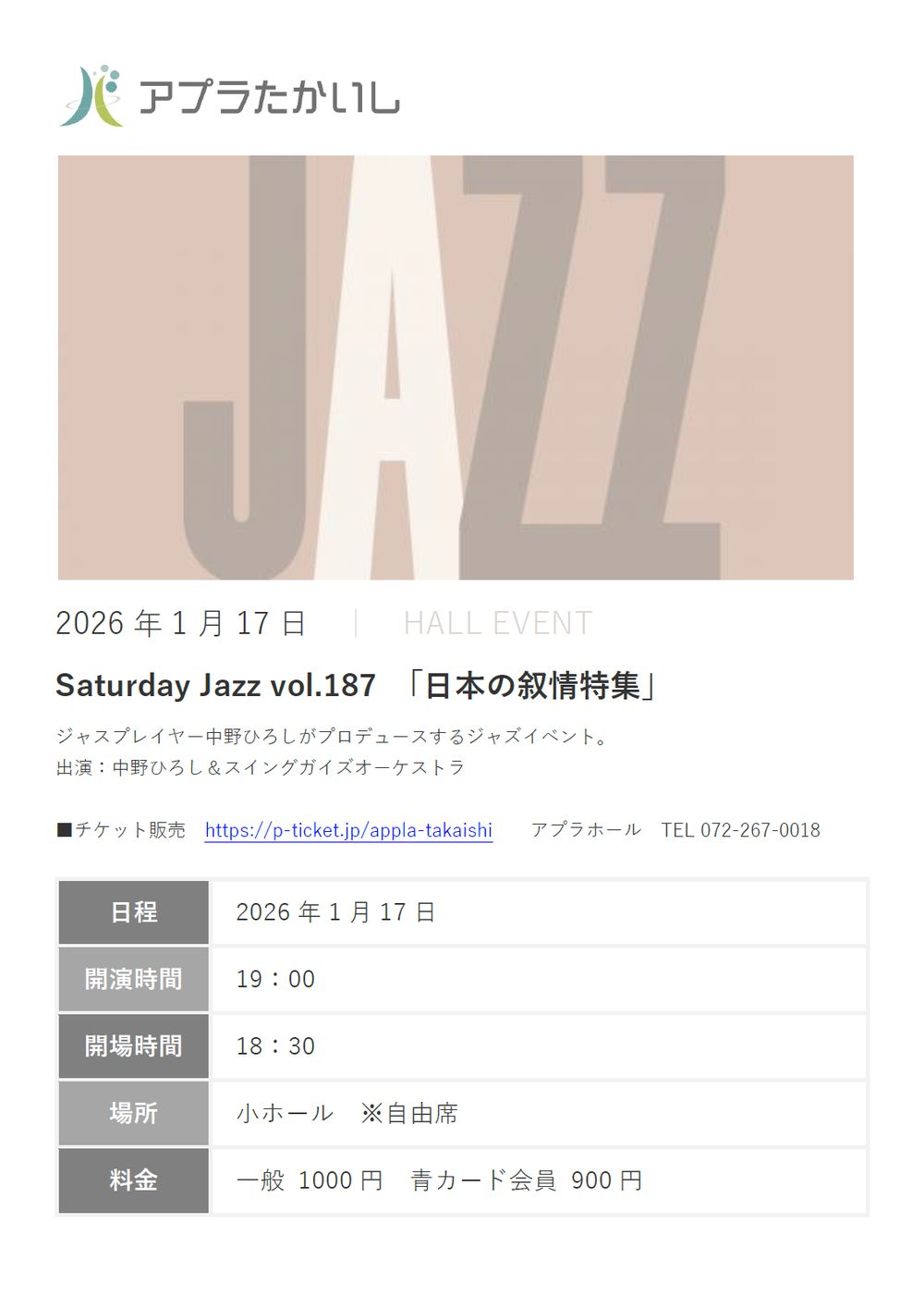 バンドマスター中野ひろし率いる1962年結成の社会人ビッグバンド。