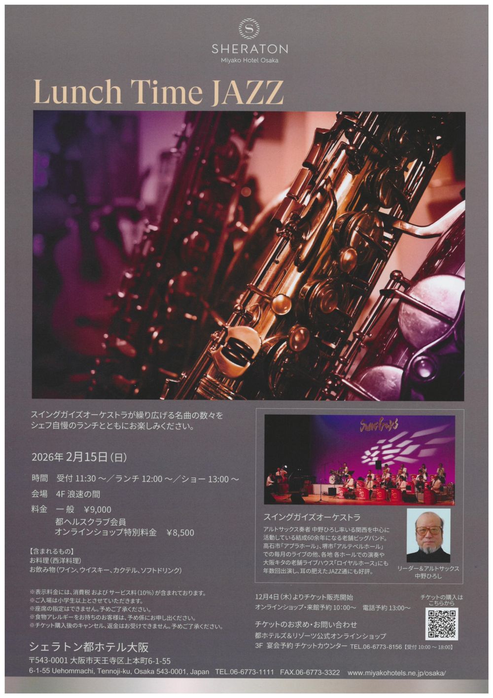 | 2026/2/15 Sun. | Lunch Time Jazz | Vol.23 | シェラトン都ホテル大阪 | 13:00 Lunch 12:00 |
