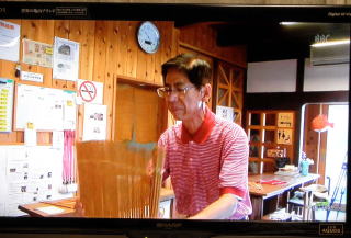 | 多賀町シルバー人材センターさんが、募集されて始まった「南京玉すだれの体験講座」も、今回が3回目となり、集われた皆さんも和やかな雰囲気になってきました。 練習を始めて30分ぐらい経った10時すぎ、ビデオカメラに三脚を持たれた方が、「練習しているところを取材したい。」と、門前亭に入って来られました。 多賀町シルバー人材センターさんのホームページで、南京玉すだれの体験講座を知られ、来られたとの事で、約20分あまりいろんなシーンを撮影され、俊丸もインタビューを受けたり、紅峰と共に正調南京玉すだれの踊りをご覧戴きました。 夕方の「キラリン滋賀」の中では、約1分10秒ぐらいに編集されて、夫婦の活動を放送して戴きました。 誠にありがとうございました。 放送されたビデオ写真ですが、会員の方の確認を得ていませんので、少し、ぼかしを入れています |