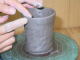 ロクロが最低一周するまでは、手の位置を変えずに同じ高さと、場所で指先に神経を集中して、厚みを感じられるところは摘んで、そうでないところはそのままで、同じ外周の厚みとロクロ同円心状の位置で一定にしていきます。