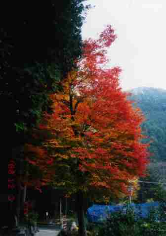 目の前に目の覚めるような真っ赤な紅葉が見えると、