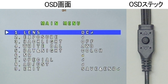 OSD(オンスクリーンディスプレイ)によってカメラの詳細な設定を行うことができます。