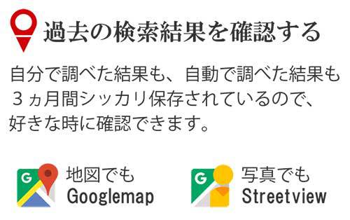 現在位置の検索及び位置履歴の取得によって、危険地域に行っていないか等の確認がいつでも行えます。 - 無料使用可能期間