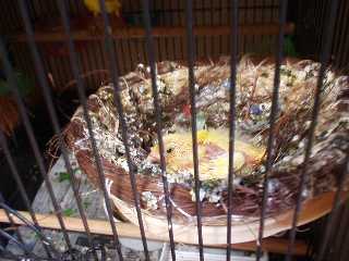 2002.10.9 1日で巣草やら鳥かごの下に敷いてある新聞紙の切れ端やらをかなり巣に持ち込んでいた。 |