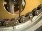 CHG チェーンガード A270 RKなどでも同じ様なタイプが売られています まぁどれも似たり寄ったりです それよりもチェーングリースを挿した後は余分なグリースをしっかり 拭き取っても走行すれば小さい鼻クソがブチブチブチッ飛んでしまう・・ と思ってる貴方! この部分に付いてるグリースを1コマづつ拭き取りましょう これで殆ど飛びません! |