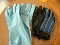 100円ショップで売ってるゴム手袋 薄手タイプ 普段はMサイズのグローブを使うのでLサイズを購入 |