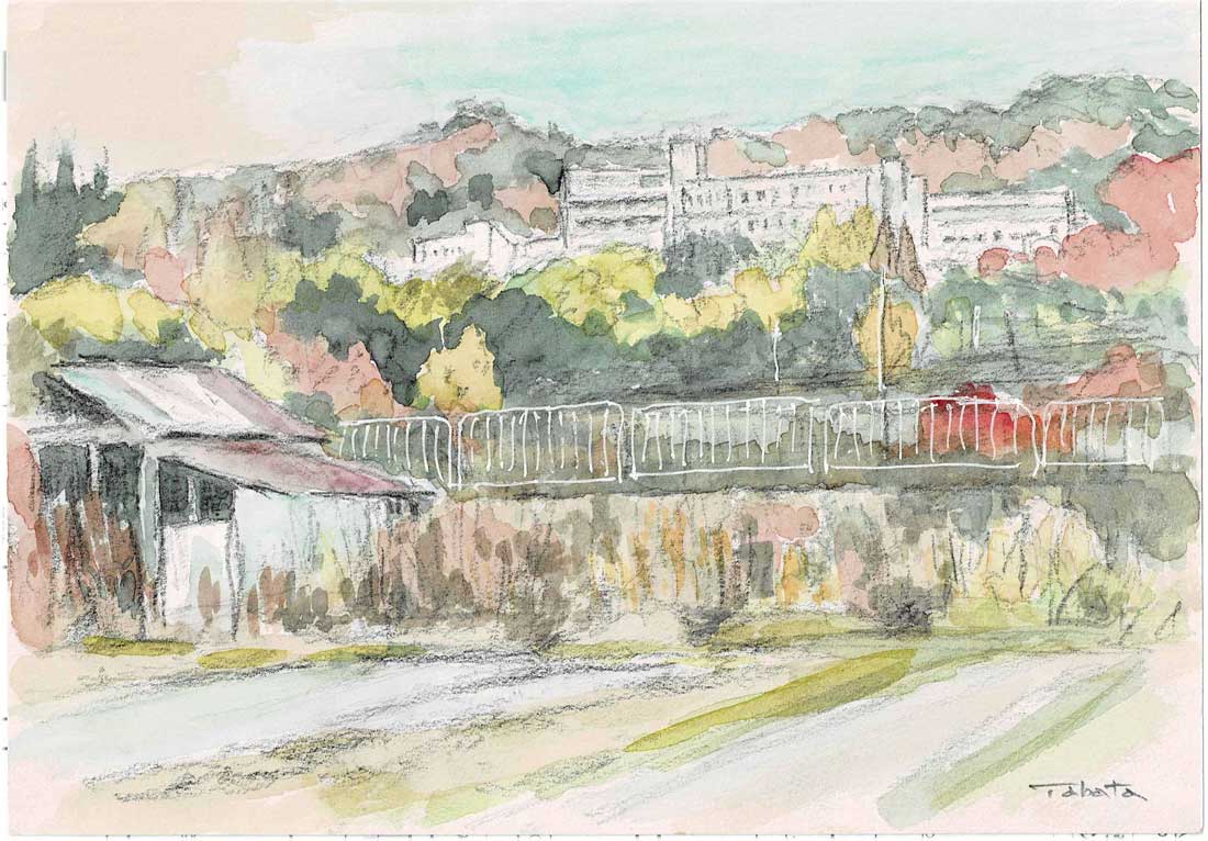 能勢町牧集落の棚田はさほど大きいわけでもなく有名でもない場所だったが、近ごろこのあたりまで何が変わるのか畑地が造成され始めている。雰囲気のいい今のうちにスケッチで残しておこう。