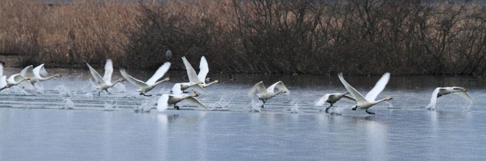 実は3週間前にもここを訪れた。当日は生憎の吹雪であったが多くのコハクチョウが近くの畑に採餌へ次から次へ飛び立って行った。