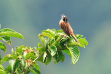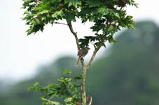 | P8(12:40:02) はるか南遠方の樹上に鳥発見(写真左)距離1300m(鳥長30cmと仮定) 100倍UPするも種不明 形状から杜鵑類ではない?(写真右) |