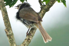 | P9(12:45:02) 近くの潅木にウグイスが止まり盛んにさえずり始めた(写真左)。10倍UP 距離18m(写真中) さえずり中のウグイス(12:45:16)(写真右) |
