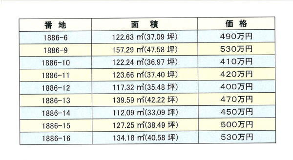 | 価格 | 価格 400〜530万円(税込) | 現況 | 更地 |