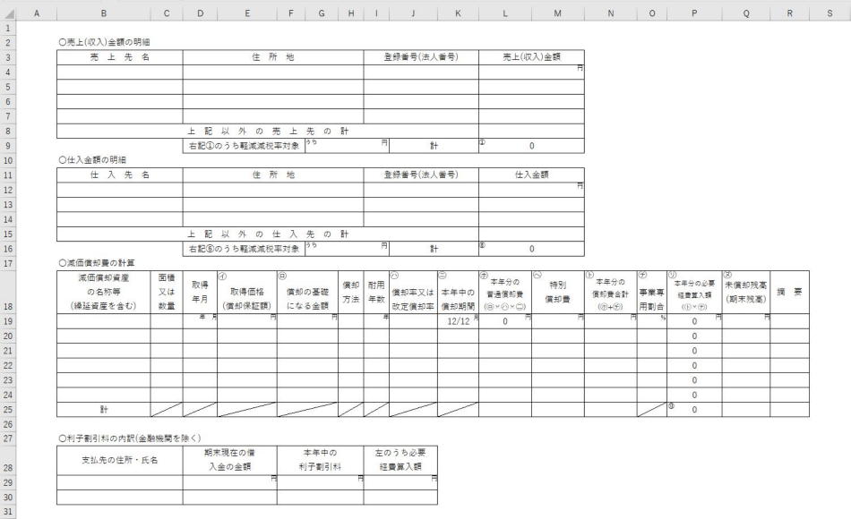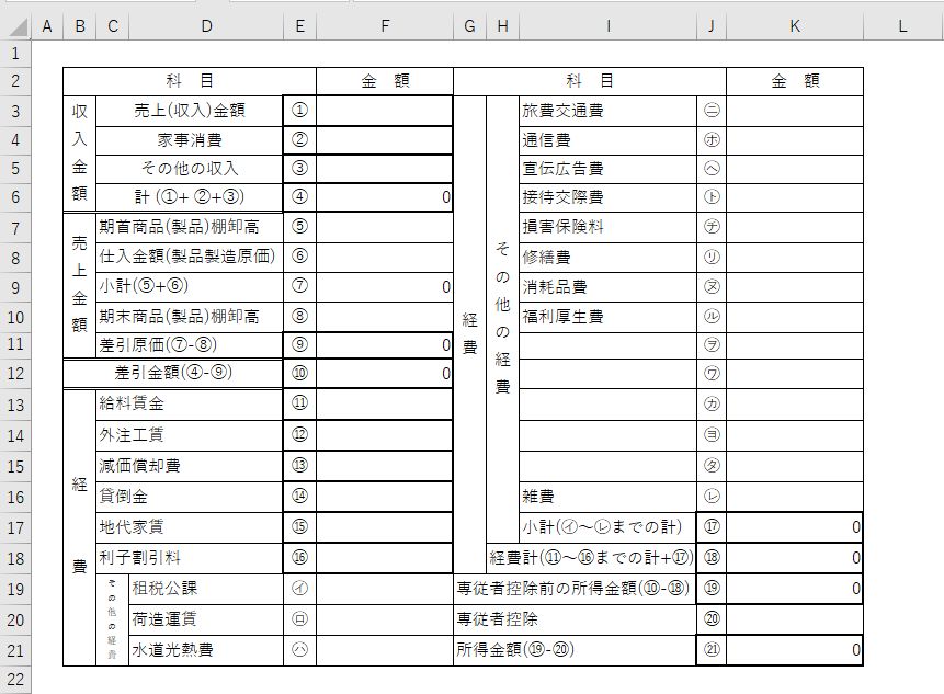 確定申告の収支内訳書の表の計算部分をEXCELにしました。