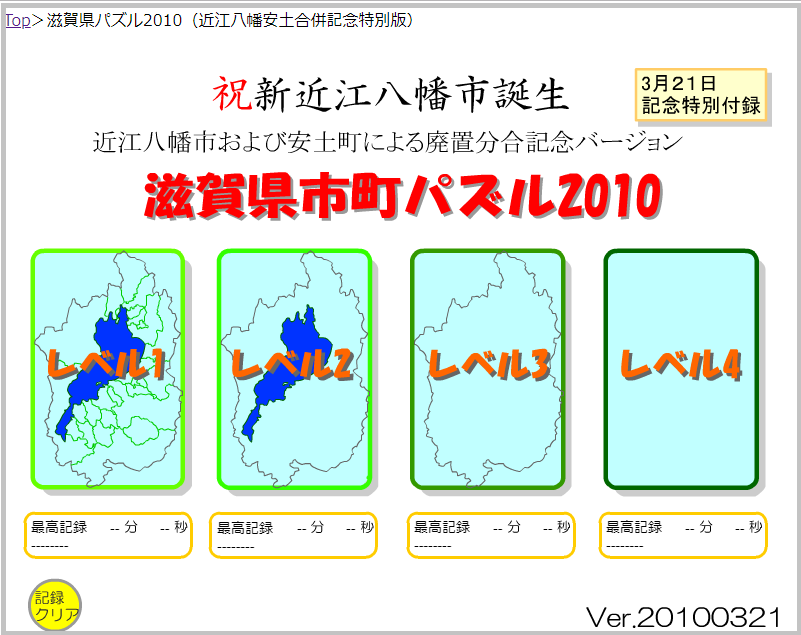 …テトリス型、ジグソーパズル型の2種類のパズルで滋賀県の19市町がおぼえられます(Adobe Flash が必要です)