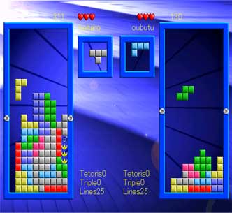 「カタリス」とは、対戦型落ちものパズルゲーム。落ちてくるブロックを素早く消して相手に攻撃し、相手の命三つをすべてなくすことができれば勝ちとなります。 カタリス Xの画面でございます。 落ちてくるブロックを回転させ、うまく横一列のラインを埋めることができれば、そのラインを消すことができます。 GO TO NEXT NANDAROU? GO TO TOP