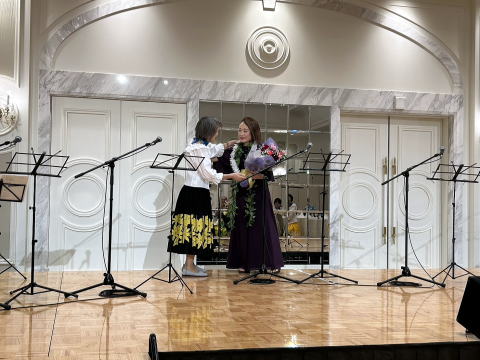 最後の「ハワイ・アロハ」では、会場のお客様も皆で手をつなぎ、私も机と机の間の通路を歩いて、一人一人のお客様のお顔を見ながら、感謝の気持ちを歌いながらお伝えした。