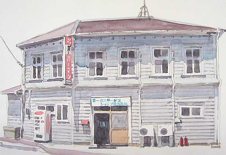 瀬戸内沿いに走っていて、この建物に出会いました、ラフスケッチと写真から描き直しましたが、影を塗り損ねてしまいました、もう一度描こうと思っていますが、屋根のアンテナがなんとも風情があるので入れたいのですが、長い支柱を入れると建物が小さくなってしまい、どうするか迷っているうちに時間切れ、取り敢えずUPしました。