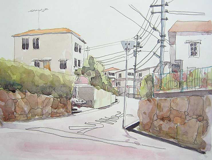 桜を描きに行ったとき、団地の坂に魅力を感じ走り描きをしました