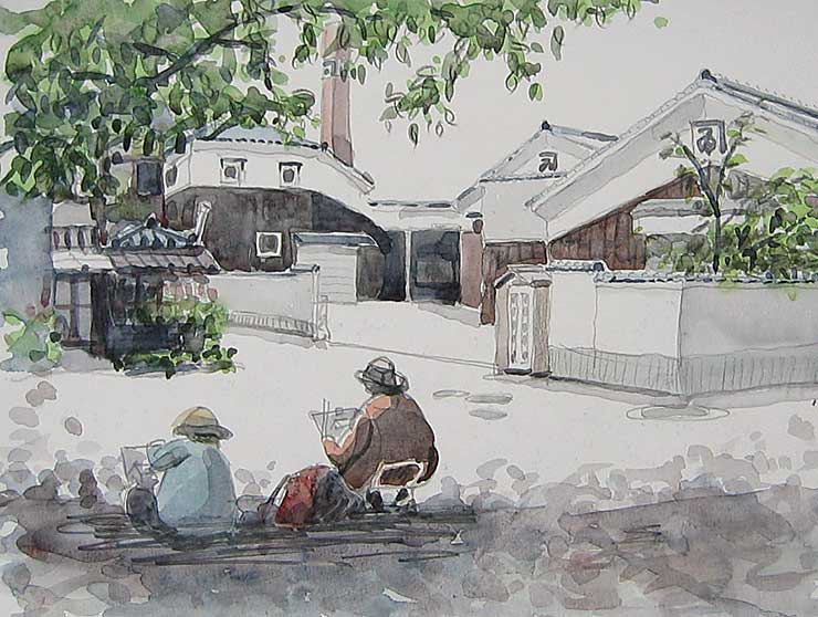例の通り岡山へ行く途中寄り道しました、絵画グループの方達が写生している後ろにお邪魔して一枚描きました、キャンソンに描き直すつもりだったのですが・・・・・・・・・