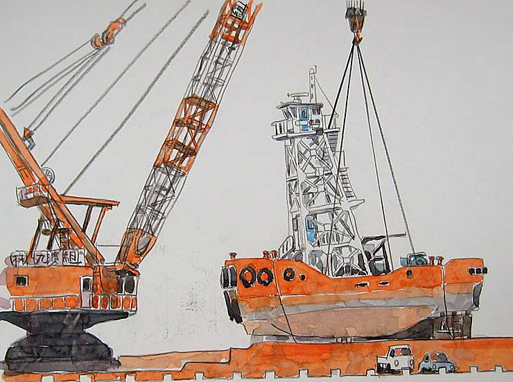 こんな船を見ると描かずにはおれません、この船の司令室に一度でいいから乗ってみたいです。