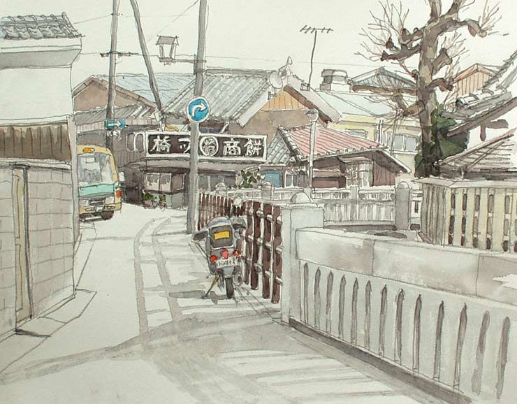 五條市の新町通りは昔の町並みが保存されており、スケッチのお薦めポイントです、川の改修が進み一寸新し過ぎの感じがしないでもありません。