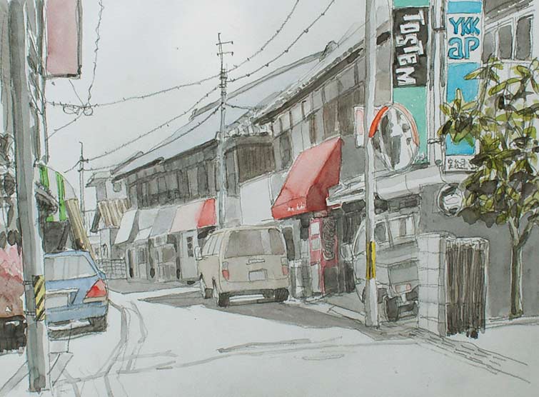 曲がった道を見つけると描かずにはおれません^^;。