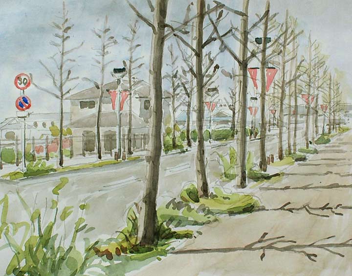 木は魅力一杯ですが描くのは苦手です、佐野文化会館の通りにはまだ大きくはありませんがアメリカフウの並木があります、葉が茂ると何がなんだかわからなくなりますので4月初めがスケッチのチャンスです。