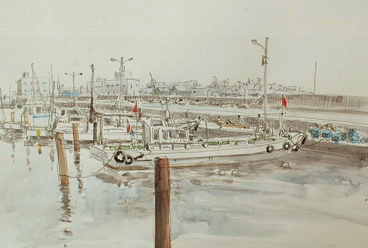 私のホームグラウンドの田尻漁港です、この港がなんで好きかと言いますと、人が少なく落ち着いて描けるからです、練習するには最高の場所なのです。