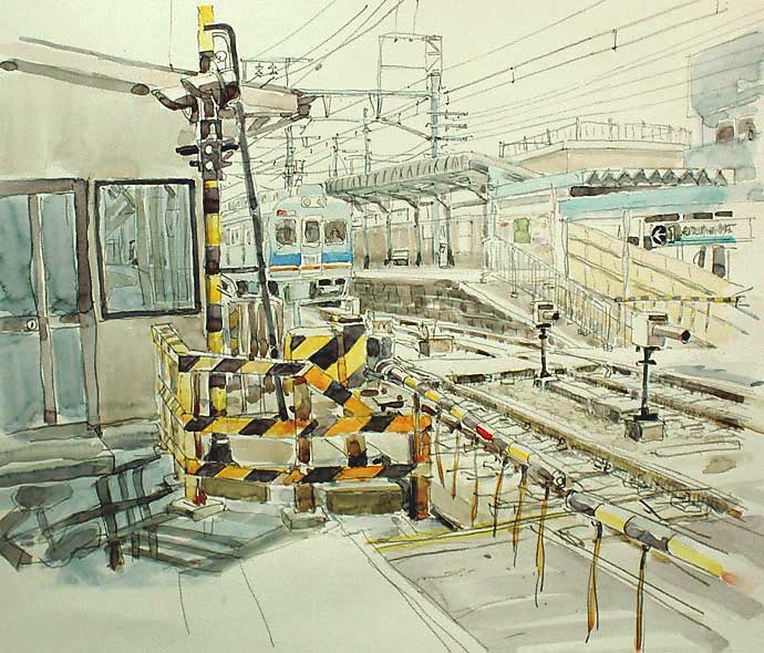 駅の絵は大好きですが、、車の往来が激しいこと、人が多いこと、電車はすぐ居なくなること等々描くとなると少々厄介です、という訳でデジカメのお世話になりました。