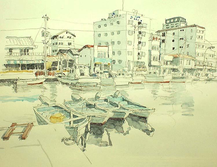 ケント紙 四つ切 ダーマトグラフ、水彩 2006/1 和歌山県那智勝浦町