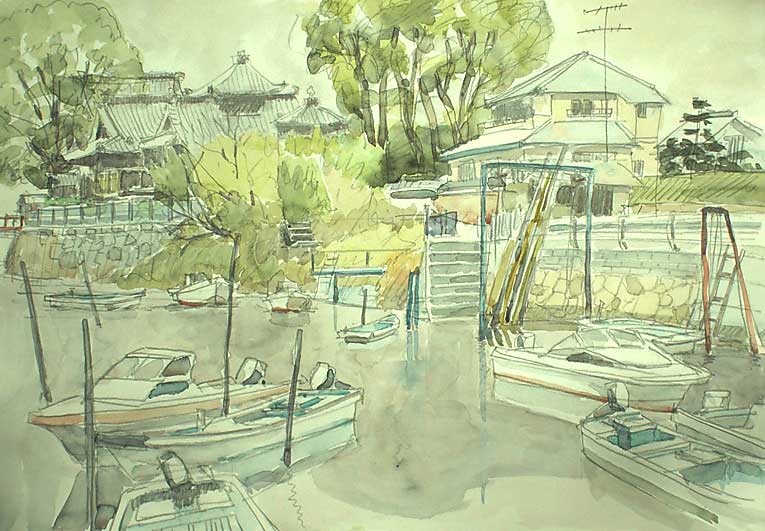 サッカーの応援に岡山へ、雨で中止になったため西大寺周辺をスケッチしました、近くの商店街も魅力溢れるところでしたが時間が無く次回ということにしました。
