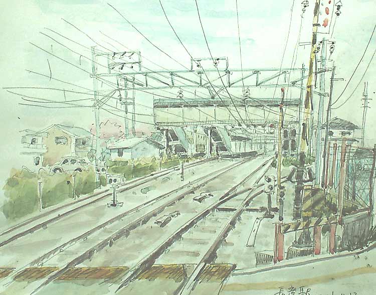 駅や踏切りを描くのが大好きです、が、肝心の架線が複雑でうまく描けません、目がまいまいします。