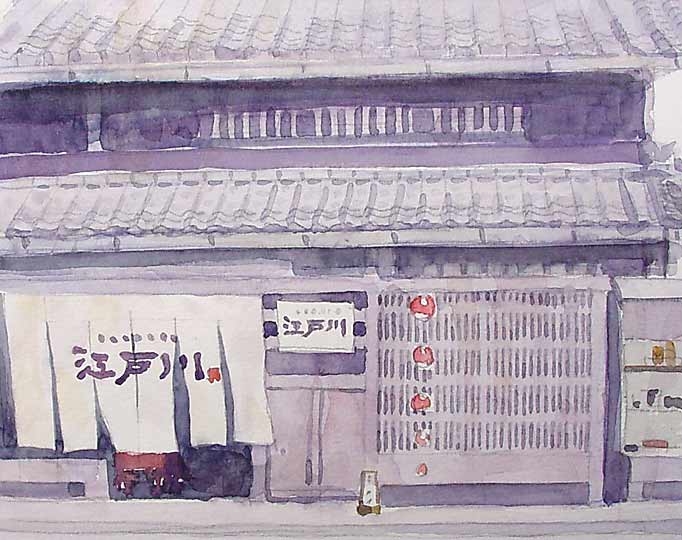 ならまちに在る東京風鰻料理店「江戸川」です、左の方に棟が続いており実物は大きな建物です。