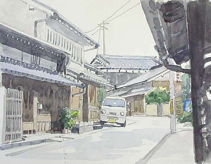 渡辺 瑛画伯が描いた大宇陀川の絵にひかれ行ってみましたが、夏草が茂っていて描くことができませんでした、例により通りを描きました。