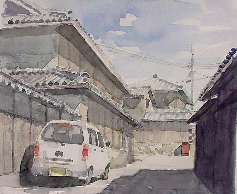 牛窓の民家 MontvalCanson F6水彩 2001/10 岡山県牛窓町