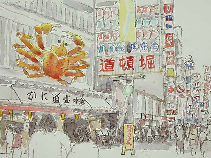 タイトルの意味おわかりですよね、そう、もうすぐこの通りの真後ろの道頓堀川に沢山の人が飛び込みます