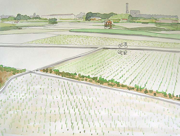 なんでもない田圃も田植えの頃は景色が一変、夢中にさせてくれます、苗を描くのは結構難しく、コツがいりそうです。