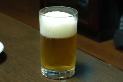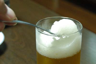 多分、ビールの炭酸ガスで圧力が加わった状態ので冷蔵庫で過冷却されていたビールが、蓋を開けてグラスに注いだ瞬間、大気圧に戻って瞬間氷結したのでは・・・、と考えられますが、今日現在、まだ再現出ていません。