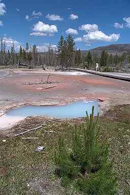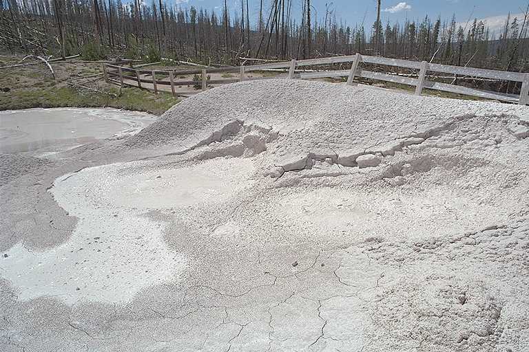 白い色のmudpot(泥水泉)なのですが、奇妙な音とともに泥を高くまで吹き上げていて、思わず笑いたくなる光景です。 Fountain Paint Potの小型版のような感じなのですが、Fountain・・よりも近くで見られるのが嬉しいし、泥を吹き上げる高さはこちらのほうが高いと思いました。それに、人が少ないのもいいですね。