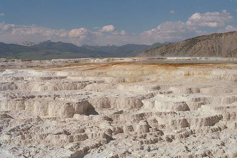 マンモスではUpper terrace loop driveに入り、途中の駐車場に車を置いてトレイルを散策します。 Minerva Terrace,Canary Springを始めとする温泉群を見て回りました。 天気は上々だったのですが、去年マンモスに訪れたときのような大きな感動はなかったです。とても楽しかったのは確かだけど。
