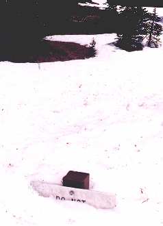 公園出口近くのこの小さな湖に着いてみると、あたりはまだ深い雪に覆われていました。駐車場からは、雪のせいでどこに湖があるのか分からなくなっていますが、山を背に雪の上を少し歩いていると見えてきました。