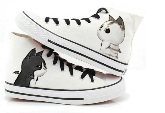 オッドアイの個性的な猫キャラクターがデザインされたかわいすぎるスニーカーです♪