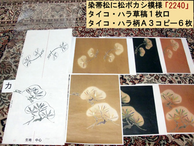 染帯用・松に松ボカシ「2240」 (線画草稿)下絵は1枚 タイコ・ハラ柄A3カラーコピー6枚です。 販売価格8000円(税・送料込み) |