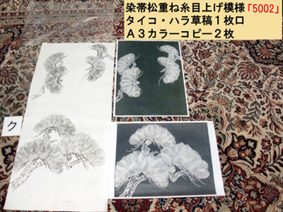 染帯用・松重ね糸目上げ「5002」 (線画草稿)下絵は1枚 タイコ・ハラA3サイズカラーコピー2枚です。 販売価格8000円(税・送料込み) |