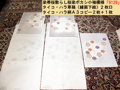 染帯用・桜散らし桜染ボカシ小袖「9129」 (線画草稿)下絵は、2枚口 A3サイズカラーコピー2枚+1枚です。 販売価格8000円(税・送料込み)) |