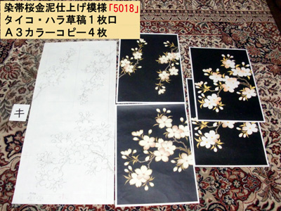 染帯用・桜金泥仕上げ「5018」 (線画草稿)下絵は1枚 A3サイズカラーコピー4枚です。 販売価格8000円(税・送料込み) |