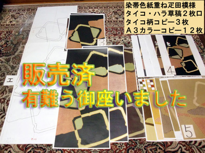 染帯用・色紙重ね疋田模様 (線画草稿)下絵は2枚口 タイコ柄カラーコピー3枚 A3サイズカラーコピー12枚です。 販売価格11500円(税・送料込み) |