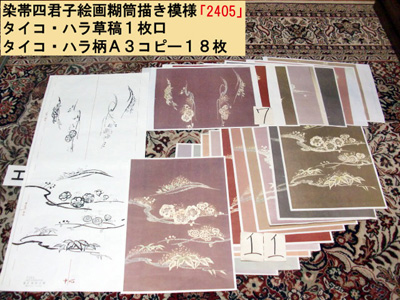 染帯用・四君子絵画糊筒描き「2405」 (線画草稿)下絵は1枚 A3サイズカラーコピー18枚です。 販売価格8000円(税・送料込み) |