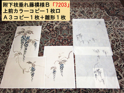 附下着尺用・枝垂れ藤B「7203」 上前カラーコピー1枚 A3サイズコピー1枚+雛形1枚 販売価格5000円(税・送料込み) |