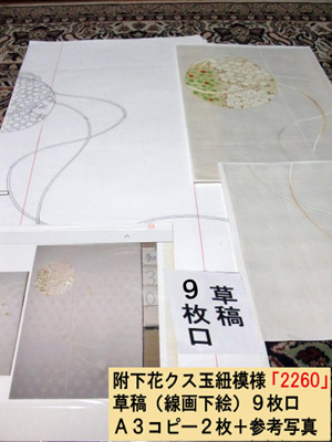 附下着尺用・クス玉紐「2260」 下絵(線画草稿)9枚とA3コピー2枚 参考写真1組 販売価格15000円(税・送料込み) |